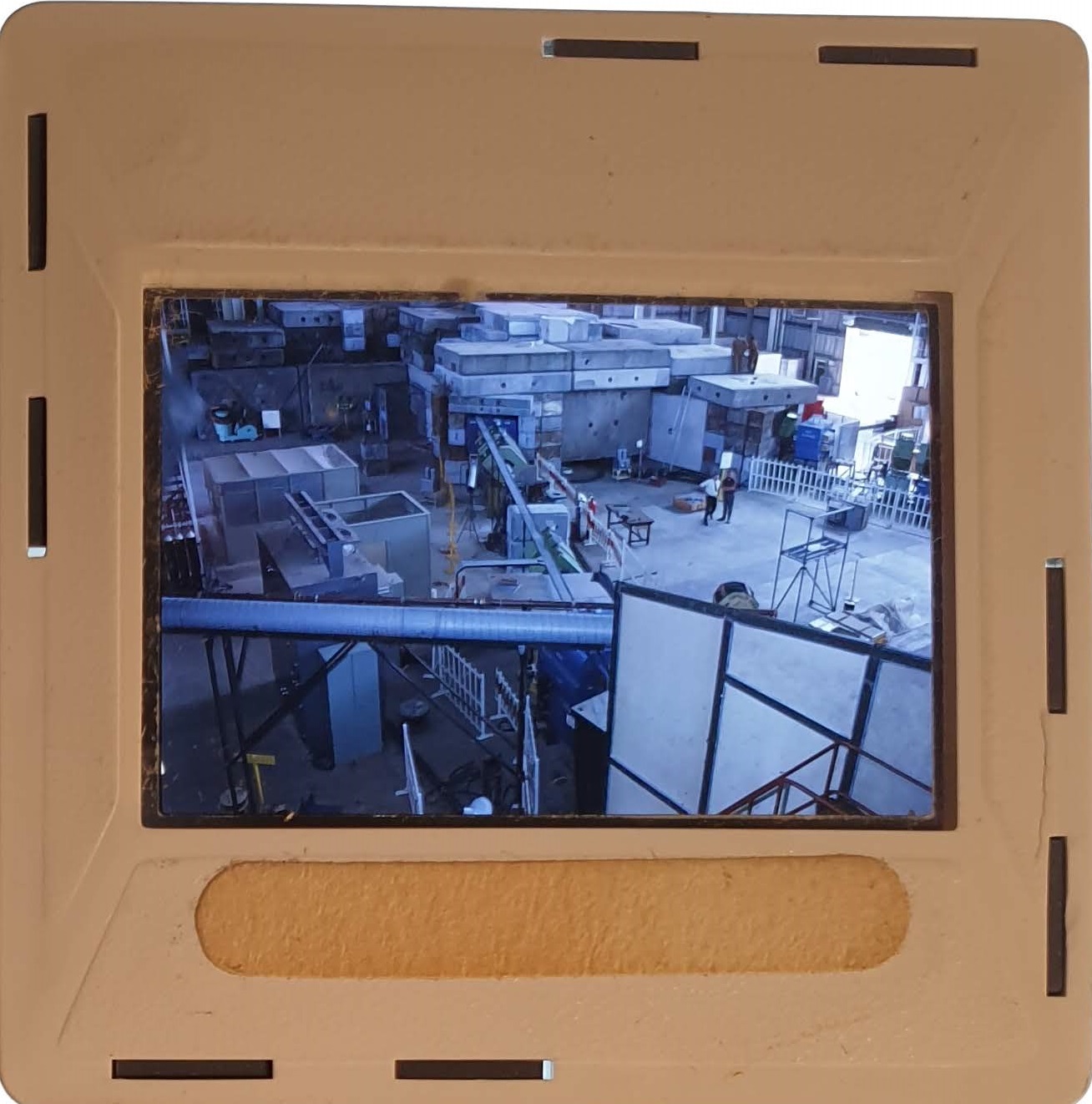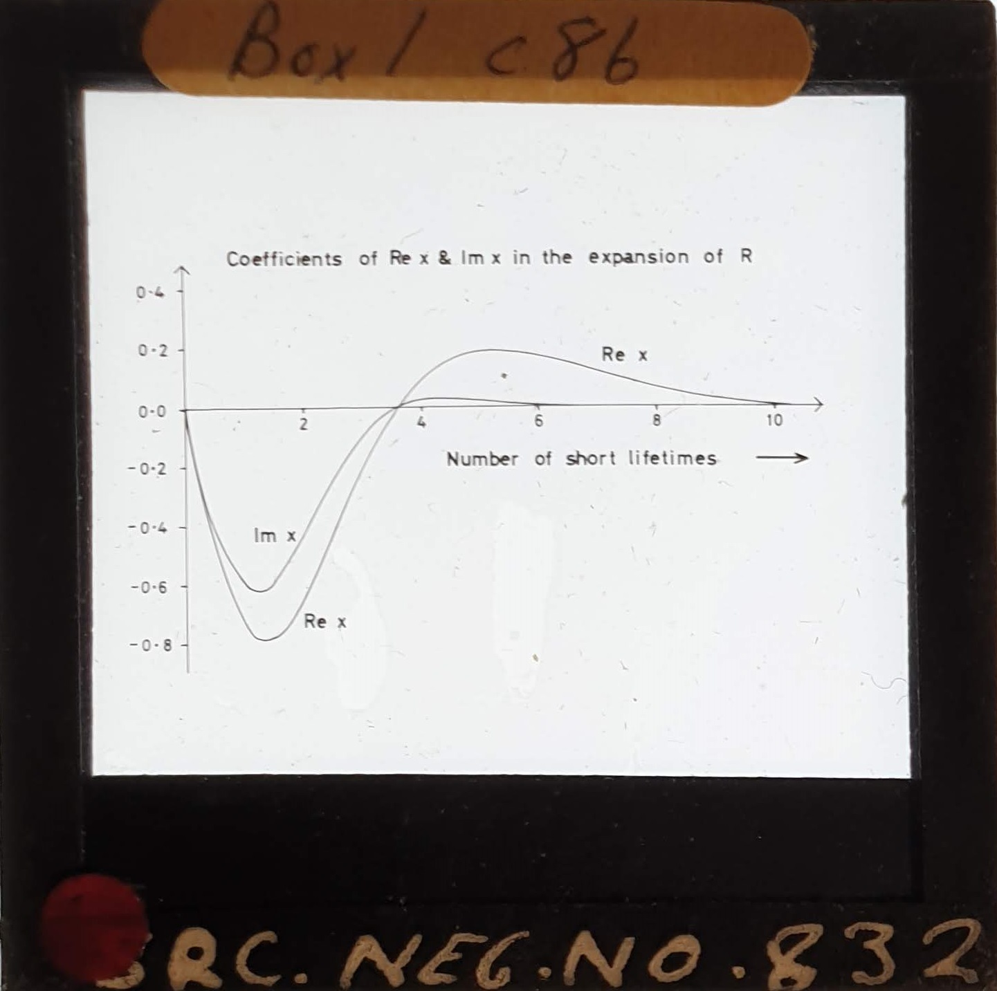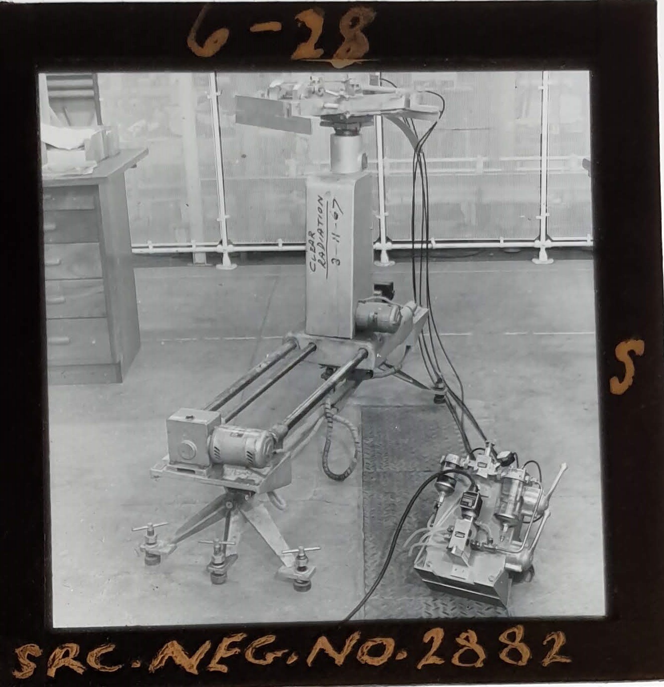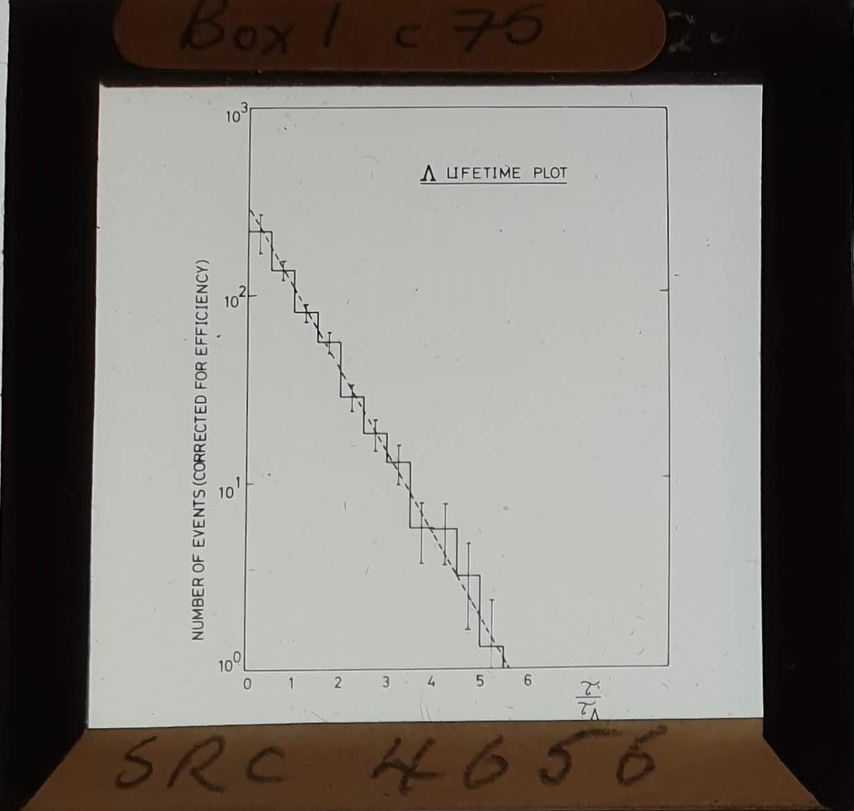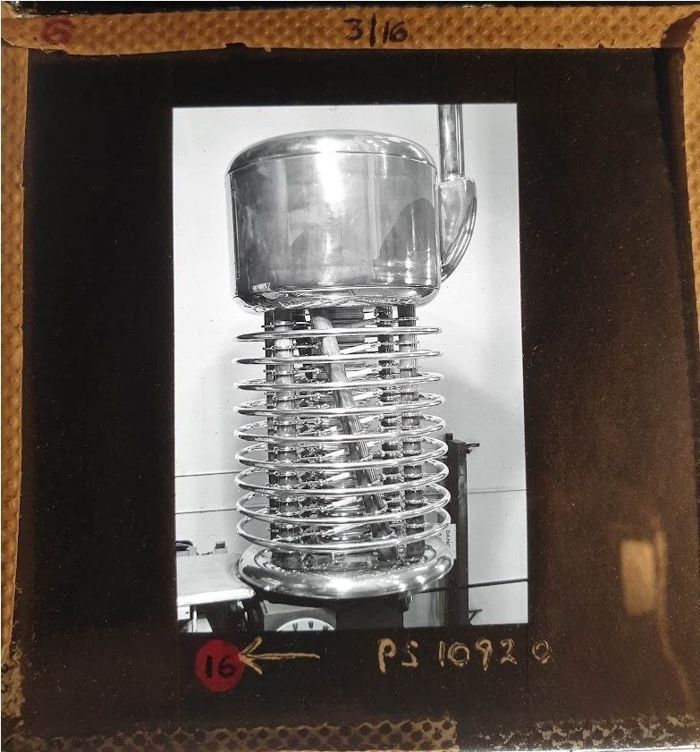 Amongst the artefacts discovered in the archives are a number of wooden boxes of 3¼ inch (8cm) photographic slides, plus wooden boxes and four-drawer metal cabinets of 2 inch (5cm) slides. The larger slides are of the PLA, the smaller slides are of the PLA and Nimrod and have been photographed simply as a record. Initials in the photograph ID are the series ID, though what each series actually is unclear. Most of the slides have been labelled with a negative number, slide sequence number and sometimes a box number but sometimes these labels are obscured, have fallen off altogether or the slide may have been "borrowed" then put back in the wrong place.