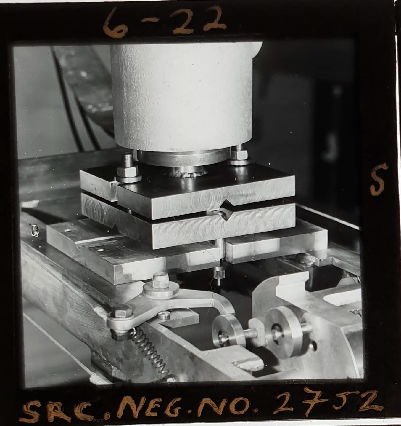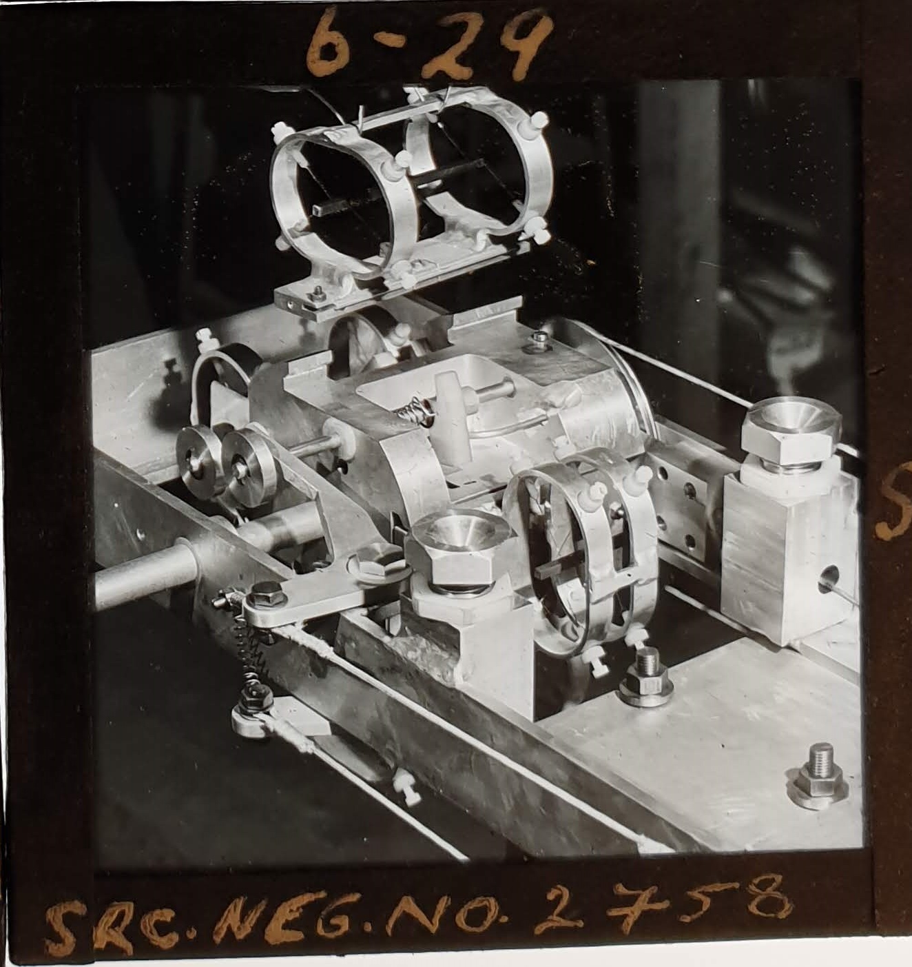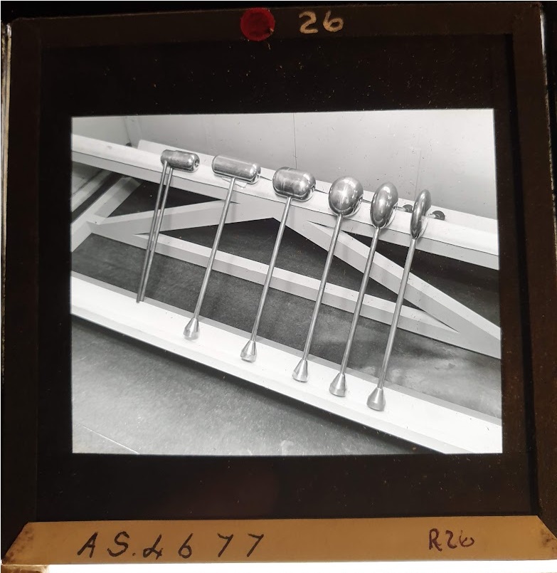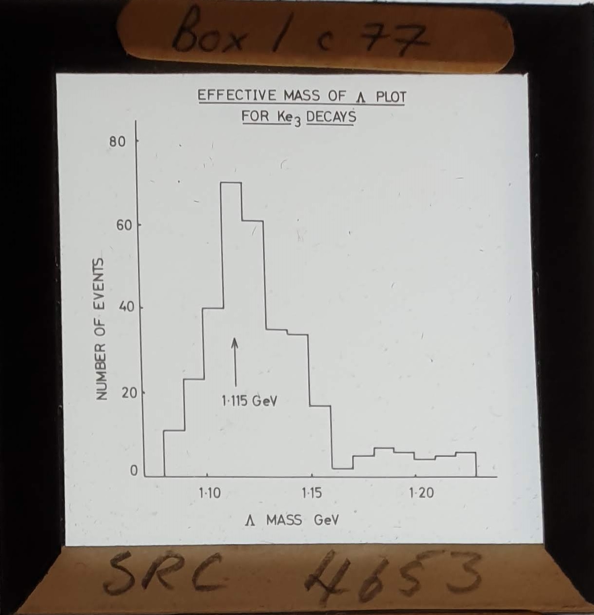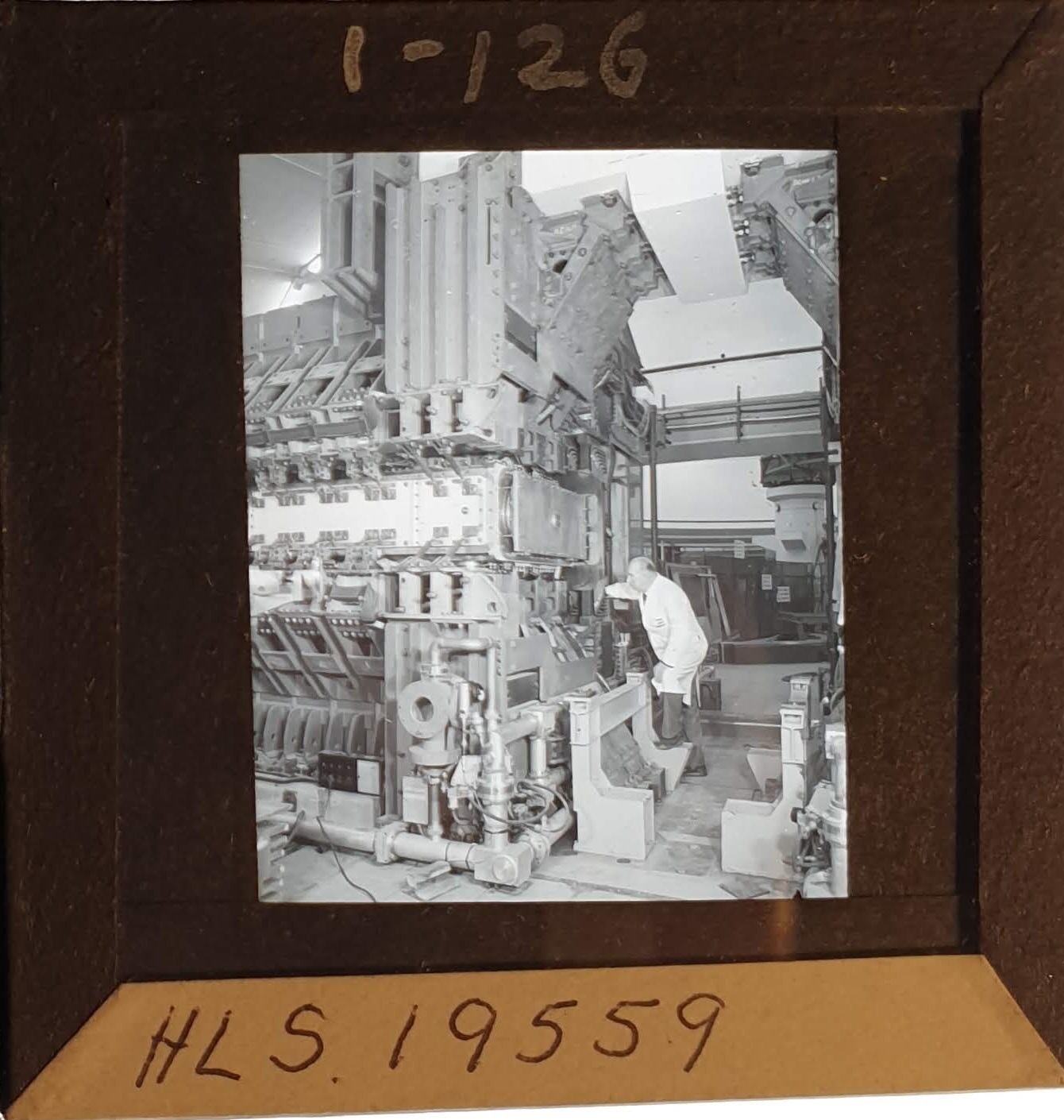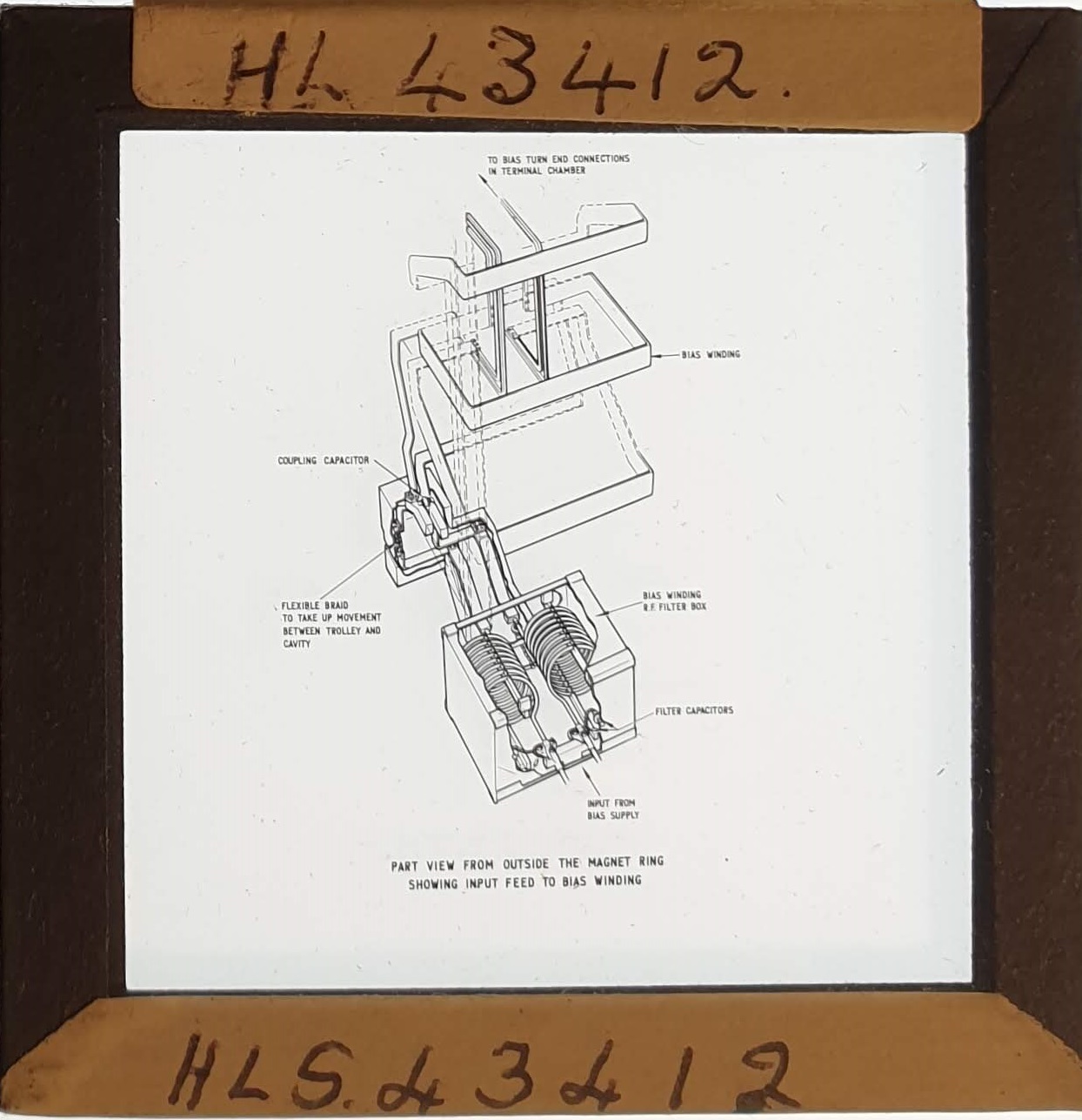 Amongst the artefacts discovered in the archives are a number of wooden boxes of 3¼ inch (8cm) photographic slides, plus wooden boxes and four-drawer metal cabinets of 2 inch (5cm) slides. The larger slides are of the PLA, the smaller slides are of the PLA and Nimrod and have been photographed simply as a record. Initials in the photograph ID are the series ID, though what each series actually is unclear. Most of the slides have been labelled with a negative number, slide sequence number and sometimes a box number but sometimes these labels are obscured, have fallen off altogether or the slide may have been "borrowed" then put back in the wrong place.
